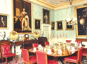 Lord Rivers added this room in about 1775, with a ceiling design taken from an illustration in Robert Wood's book The Ruins of Palmyra. The furniture is almost all Regency and the paintings represent members of the 1st Duke's family..