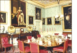 Lord Rivers added this room in about 1775, with a ceiling design taken from an illustration in Robert Wood’s book The Ruins of Palmyra. The furniture is almost all Regency and the paintings represent members of the 1st Duke’s family.